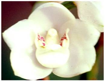 Se caracteriza por tener pétalos de un color marfil intenso, adornados en el centro de su libelo con una bien definida y delicada paloma que florece en los meses de julio a octubre.